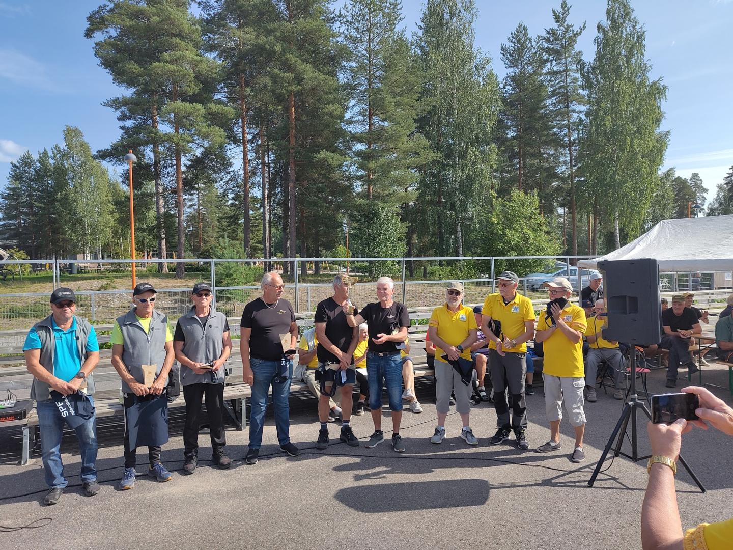 Kronoby pensionärer var väl representerat i årets turnering. Här poserar de tillsammans med några representanter för Vi Norrifrån (Bild: Mikael Tuomisalo)