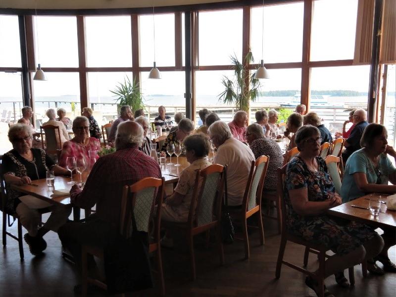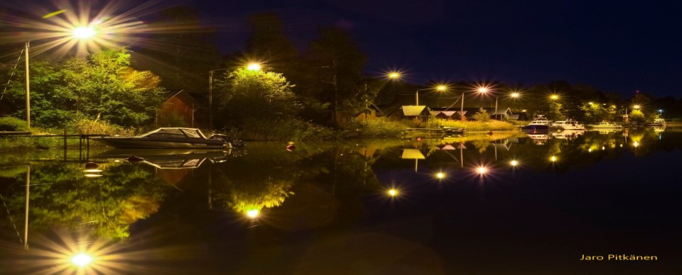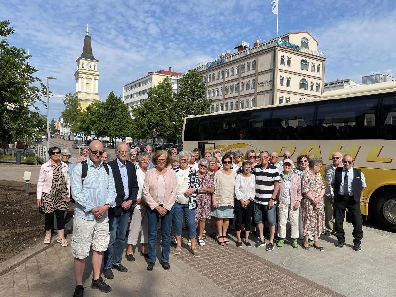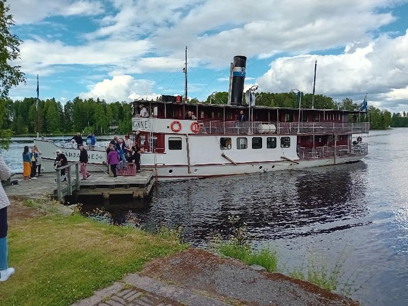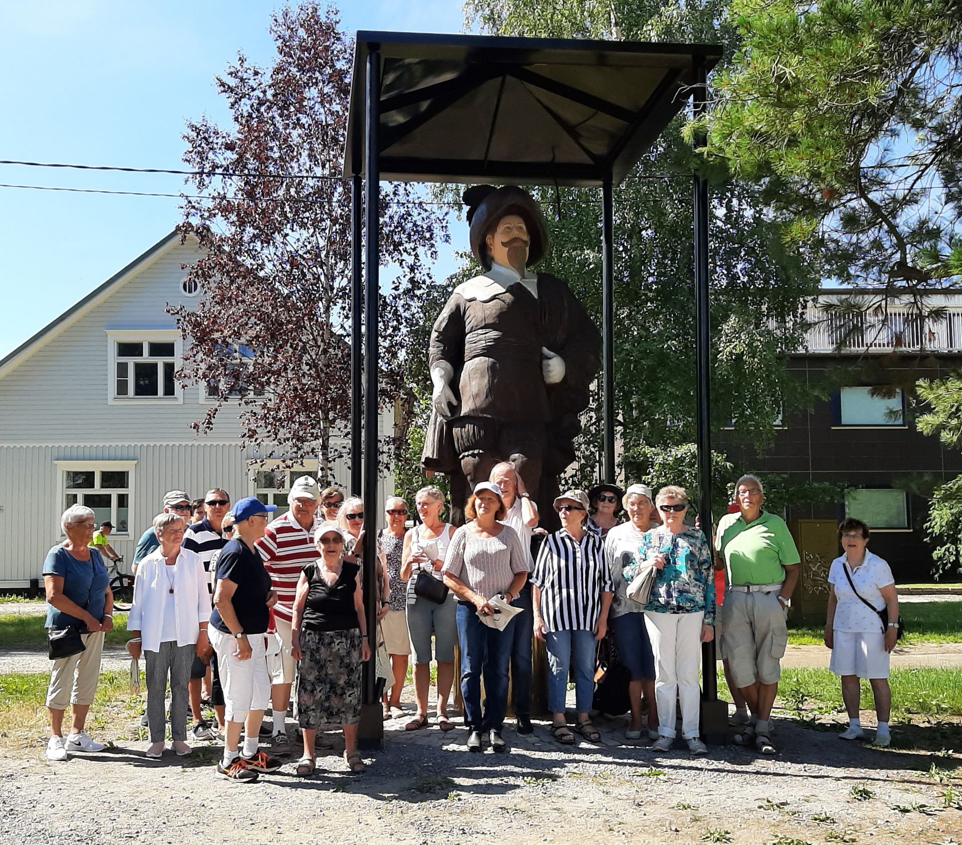Societetshuset, Rudbäcks, Mokka-Motti och Takalas Essso. Onni Långsveds buss på väg från Yxpila och V.Suomelas skolbil Pobeda lär ut körning med automobiler.